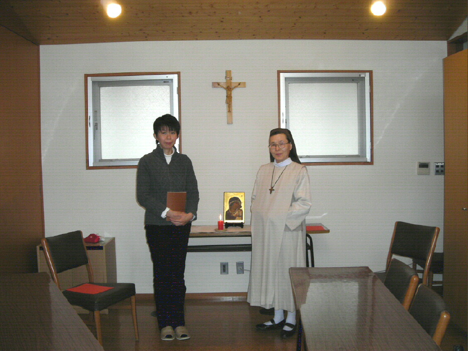(写真左) 9月に神のもとに召されたSrマリア・ステファナ(吉浦京子)の御家族、4人の姉妹方が 関東においでになった機会に再び修道院に立ち寄られました。まるで長い間分かれていたような 懐かしい思いで再会しました。深い悲しみを分かち合った人とはまた大きな喜びを分かち合える のだと実感しました。 (写真右)11月14日、平野敬子さんが本会献身者として、修練期を開始しました。平野さんはご主人と 一緒に岐阜県から来られました。共同体の見守る中で会則を受け取り、主の 過ぎ越しの神秘を社 会と家庭の中で生き、深めることを目指す第一歩を歩み始めました。 |