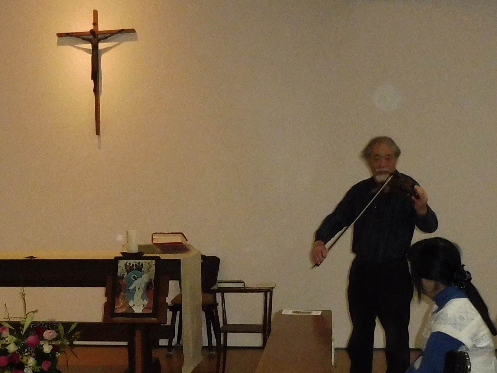 2016年 春 復活徹夜祭は今年も15,6名のお客様の参加もあり、盛大に挙行されました。 また、復活祭のミサのあと、中村氏が400年前のバイオリンでバッハの曲を弾いてくださり 喜びをさらに盛り上げてくださいました。