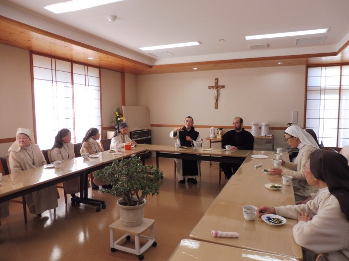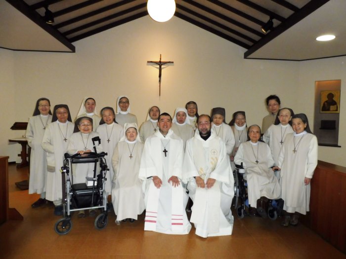 1月24日から26日まで北海道トラピスト修道院の 横内大院長さまが訪問してくださり、共に祈り、お話を聞き また楽しい交わりの時を過ごしました。 ご一緒に写真を撮りましたが一人の姉妹が入院中で残念でした。 これからの新しい出発と歩みのためにお祈りください。