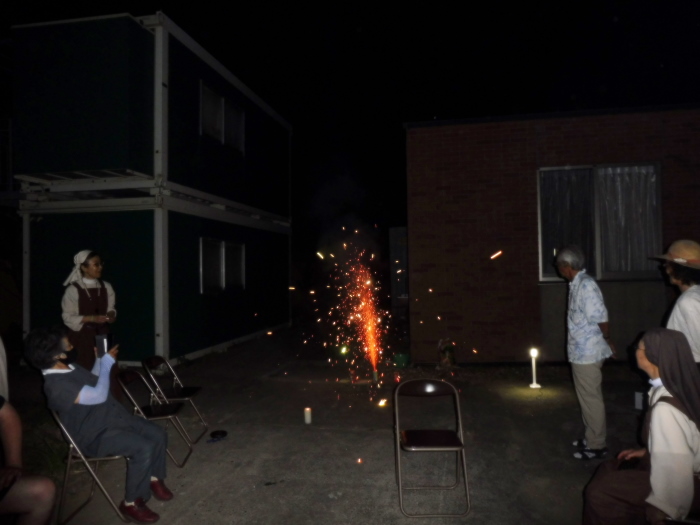 聖母被昇天祭の夜、恒例の花火大会を催しました。
