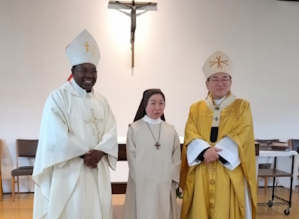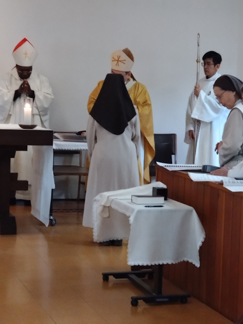 終生誓願式 2月2日 主の奉献の祝日に、Srマリア・ファウスティナ小林清美が 終生誓願宣立の恵みをいただきました。 これまで姉妹にお寄せくださいましたご厚意と祈りに支えられたことを 感謝いたします。 司式は菊地功東京大司教さまと、アンゴラから訪問くださった大司教様、 そして3人の司祭様による5人の共同司式でした。 これから姉妹が生涯忠実に自分の使命を奉献生活を通して全うできます ようお祈りください。