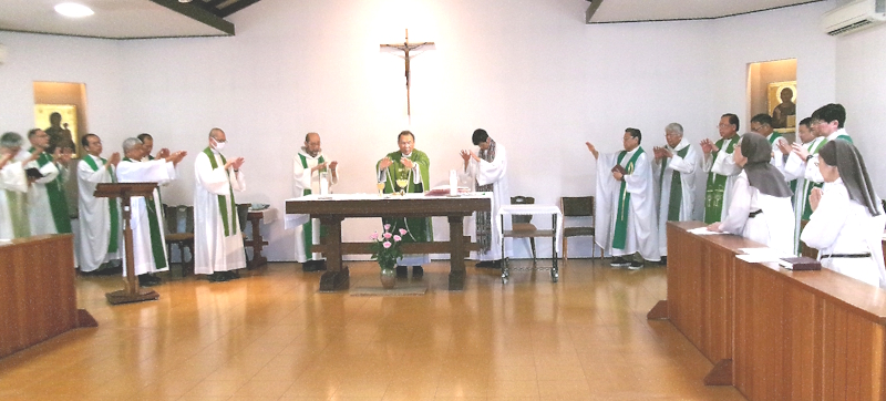 7月2日、関東以北、札幌教区、仙台教区、新潟教区、埼玉教区、横浜教区そして、 東京大司教区からの司教様方6名と各教区の司祭の方々が、白子で一泊の会議をなさり そのお帰りに当修道院で共同司式のミサをささげてくださいました。 主式は菊地枢機卿さまでした。 お話しの中で、コンクラーベとレオ14世について話してくださり, 聖霊の働きの素晴らしさを語ってくださいました。 初めての方や懐かしい方との短いでしたが出会いと再会ができたことは、 私たちにとって、恵みと喜びのひと時でした。教会のために、 益々祈りの使命を痛感しました。 |